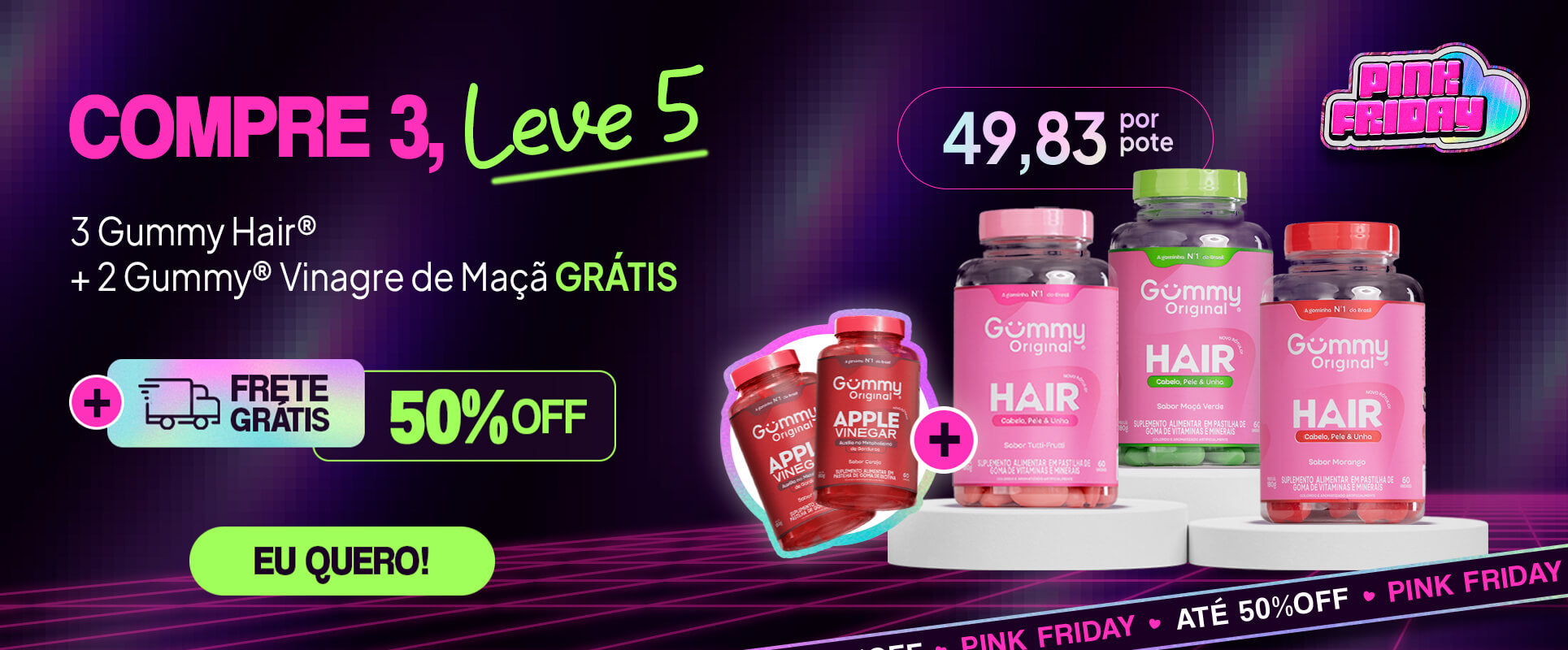 Kit Gummy® Trio Hair e Emagrecimento