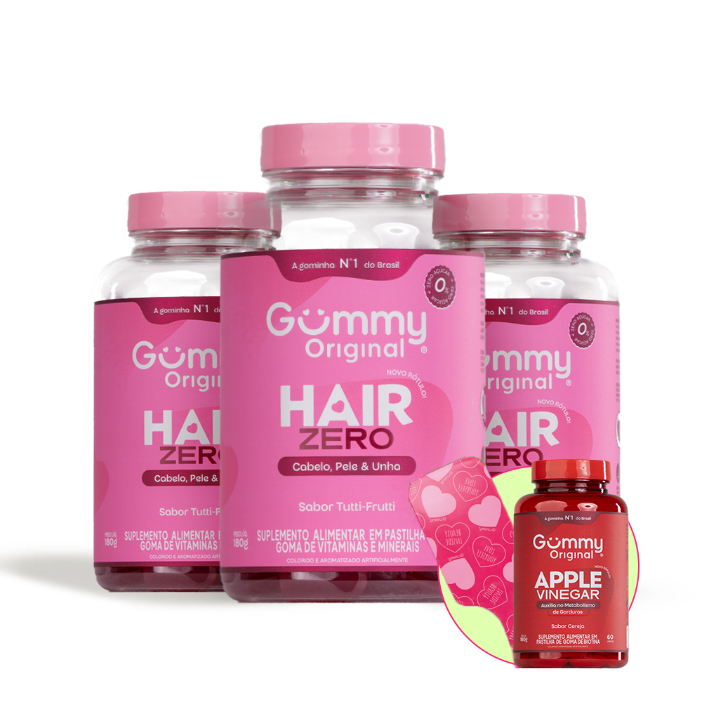 Pode comemorar: a tão esperada alternativa sem açúcar da gominha mais amada do Brasil chegou! A versão Zero do Gummy Hair mantém o padrão de performance e sabor, adaptada para que pessoas com restrição à ingestão de açúcar também possam cuidar da saúde e da autoestima com nutrientes essenciais especialmente selecionados. Gummy® A Original
